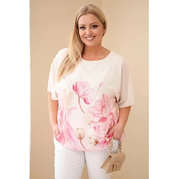 Dámská halenka Plus Size s květinovým potiskem a volným rukávem růžová