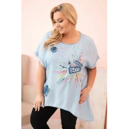 Dámská halenka Plus Size s nášivkami světlý denim