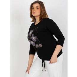 Černá plus size halenka s aplikací a 3/4 rukávy .