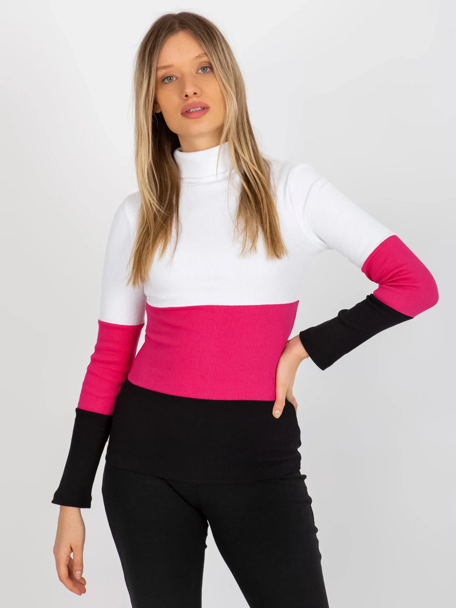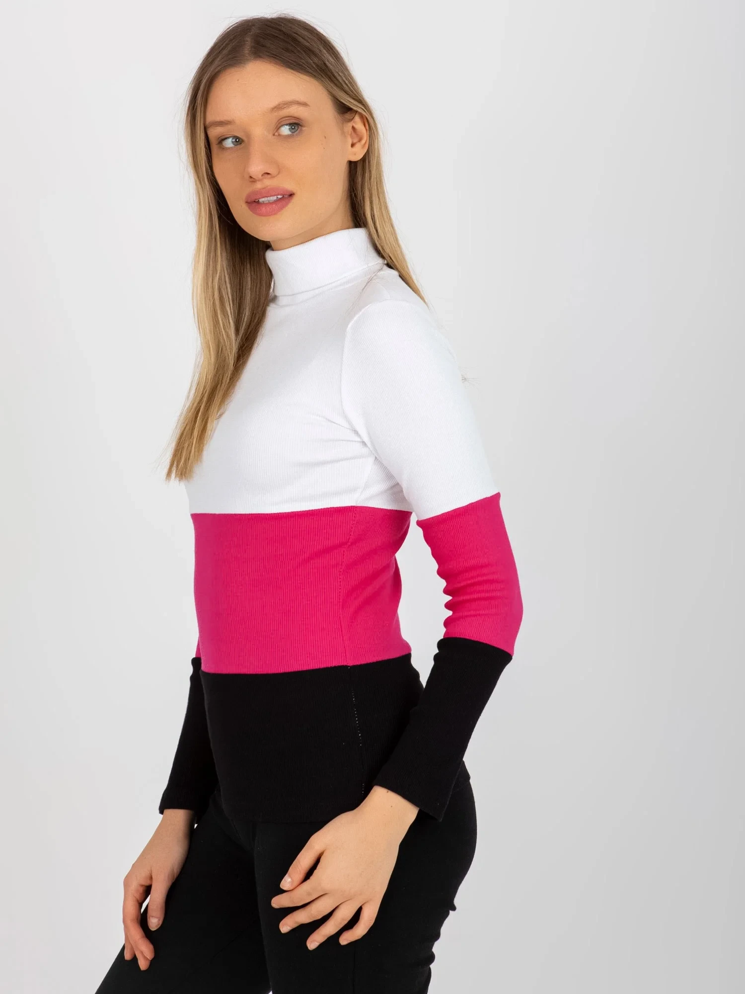 Modelka má na sobě jednu velikost. Rozměry modelky: výška 179 cm, poprsí 88 cm, pas 62 cm, boky 89,5 cm.