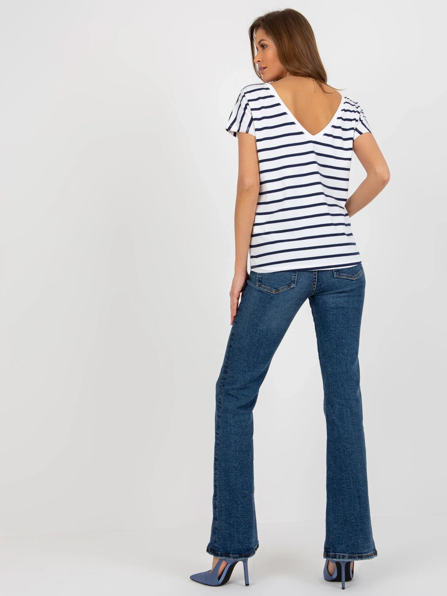 Námořnickymodré a bílé základní tričko s výstřihem na zádech .
