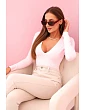 Dámská halenka s dlouhým rukávem a hlubokým výstřihem bonbónově růžová