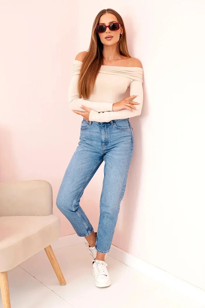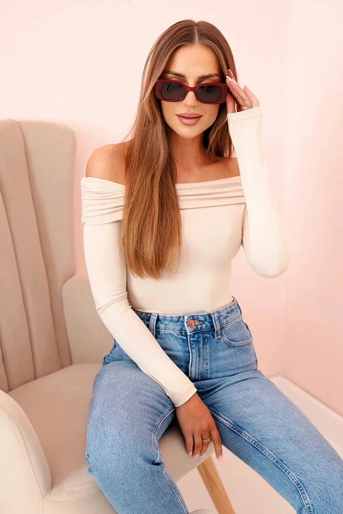 Dámská halenka s dlouhým rukávem a odhalenými rameny béžový