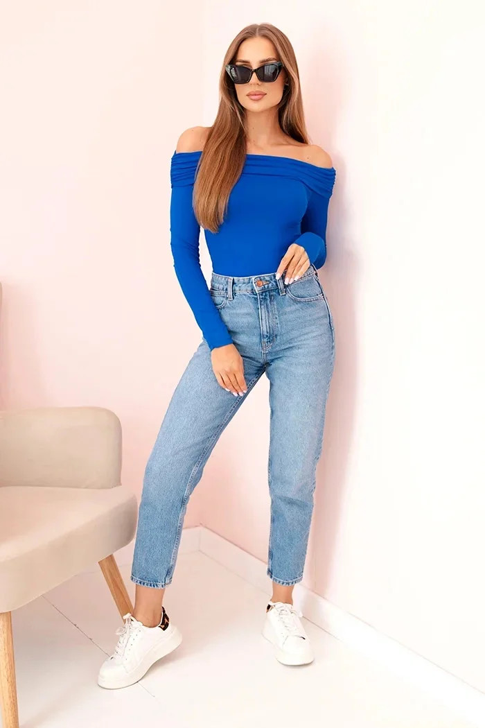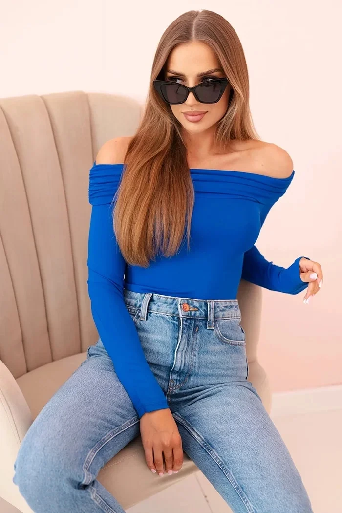 Dámská halenka s dlouhým rukávem a odhalenými rameny chrpově modrá