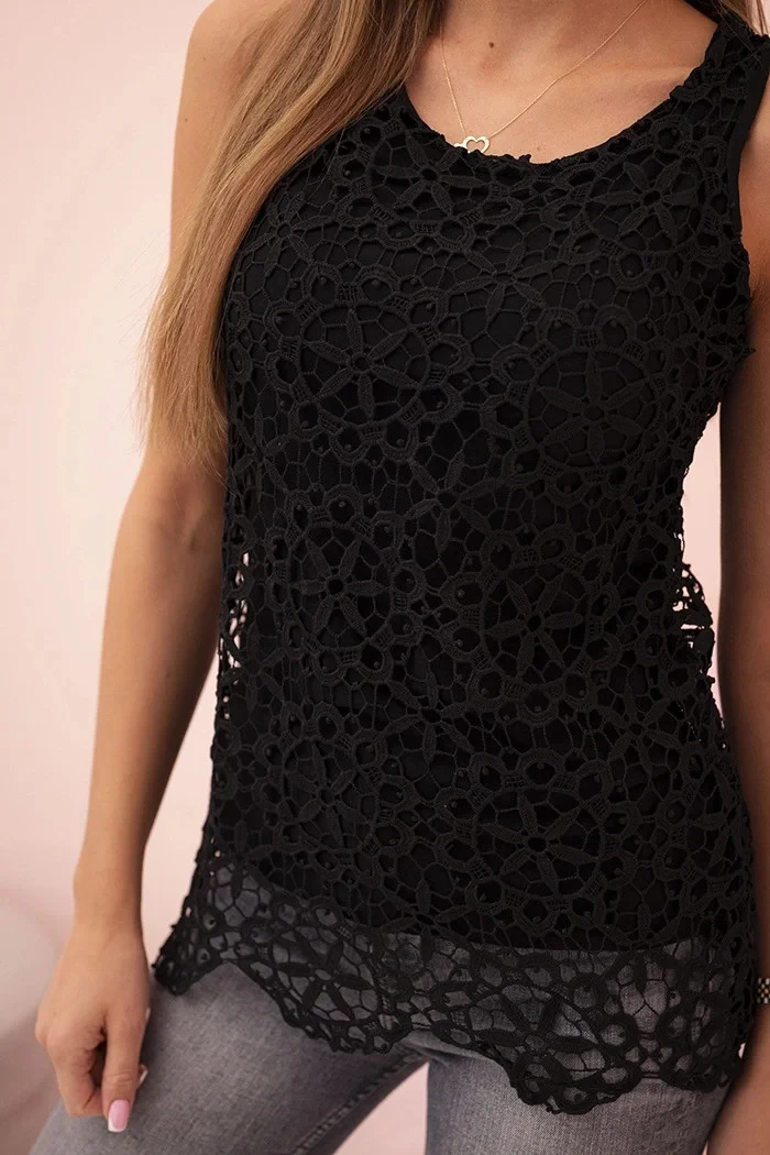 Dámská halenka s krajkou bez rukávů černý
