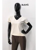 Predveďte svoj štýl a pohodlie s klasickým tričkom OFF PINK! Vyrobené z kvalitnej bavlny s prídavkom elastanu pre dokonalý strih a celodenné pohodlie, elegantný dizajn, výstrih do V a jemná nášivka značky z neho robia ideálnu voľbu pre každodenný aj elegantnejší štýl.