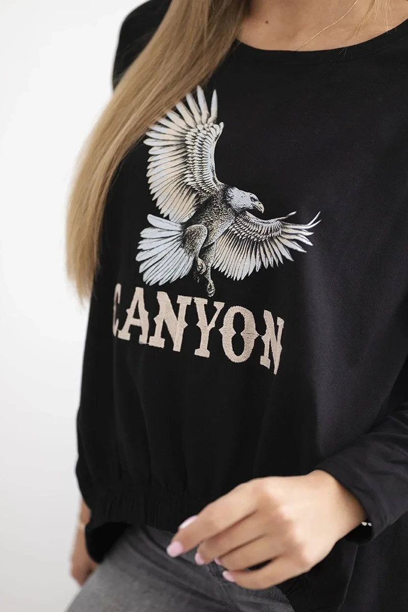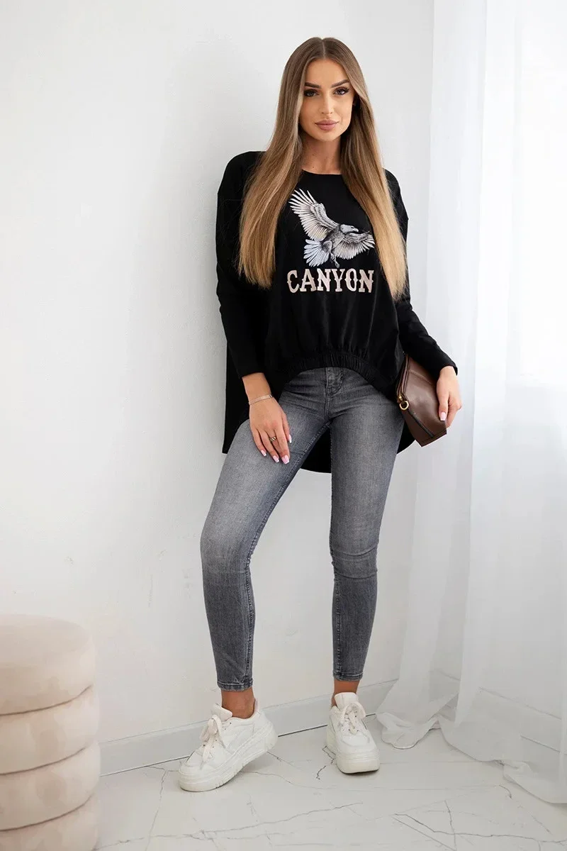 Vynikněte v městské džungli díky této stylové dámské mikině s potiskem orla a nápisem „CANYON“. Mikině přitahuje pozornost nejen originálním motivem, ale také výjimečným střihem – má prodloužený zadní díl a elastické stažení v pase, které krásně tvaruje postavu. Vyrobena z vysoce kvalitní bavlny s příměsí elastanu, zaručuje pohodlí a volnost pohybu každý den. Je to ideální volba pro ženy, které si cení pohodlí v módním provedení. Skvělá na procházku, nákupy nebo setkání s přáteli. Materiál je příjemný na dotek a oversize střih se hodí ke každému outfitu – ať už k džínám nebo legínám. Velikost je univerzální a bude vhodná pro dámy ve velikosti S, M nebo L.