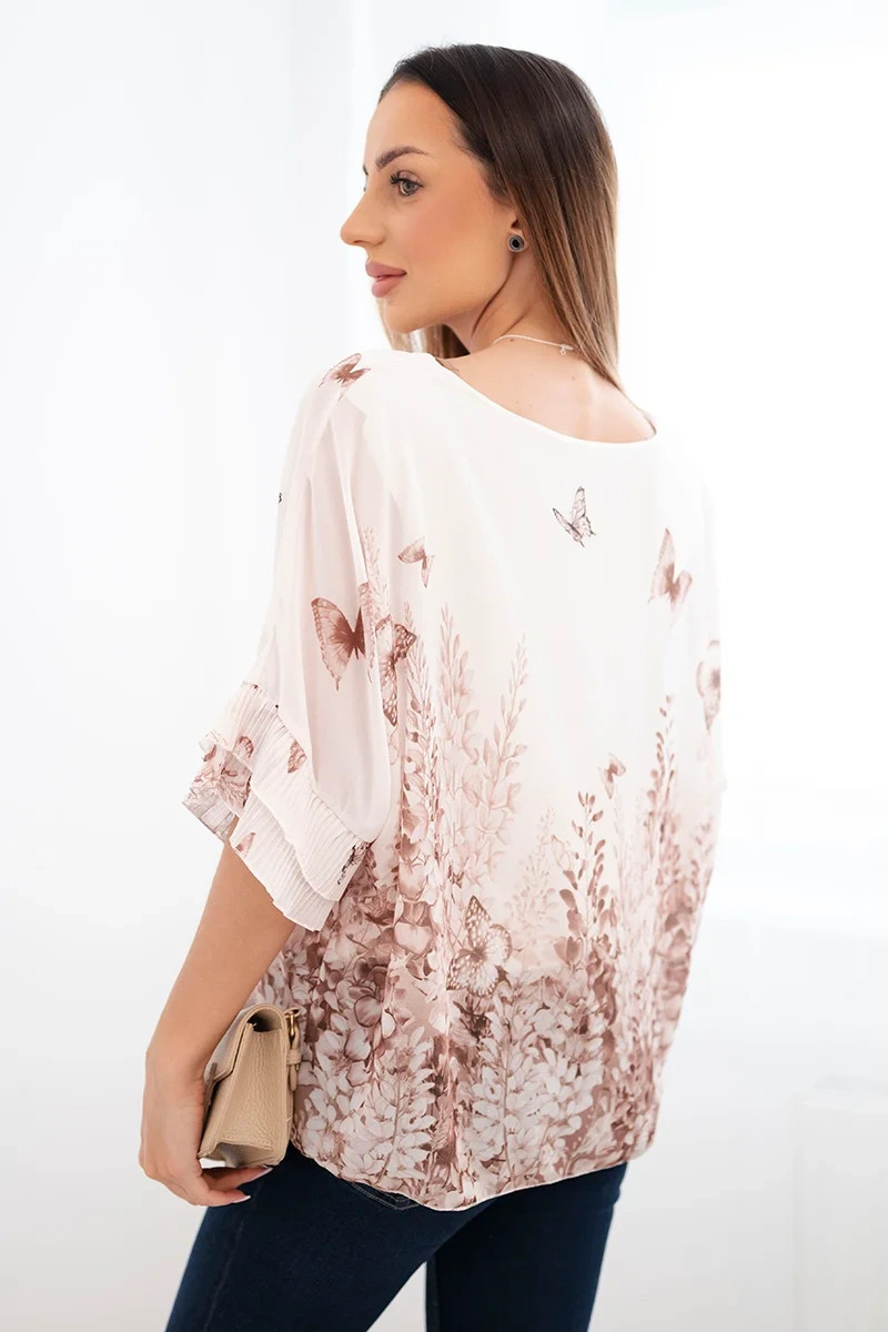 Dámská halenka s plisovaným rukávem a potiskem fango