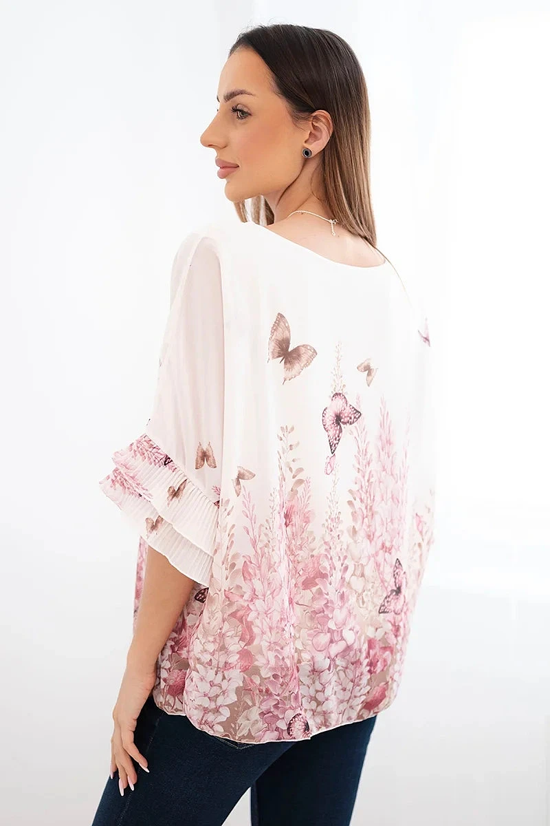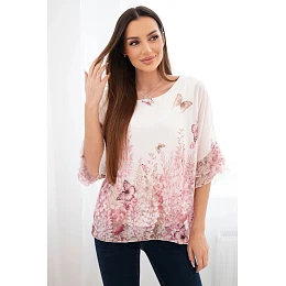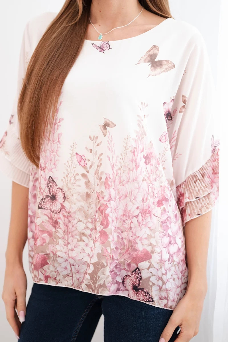 Dámská halenka s plisovaným rukávem a potiskem růžová