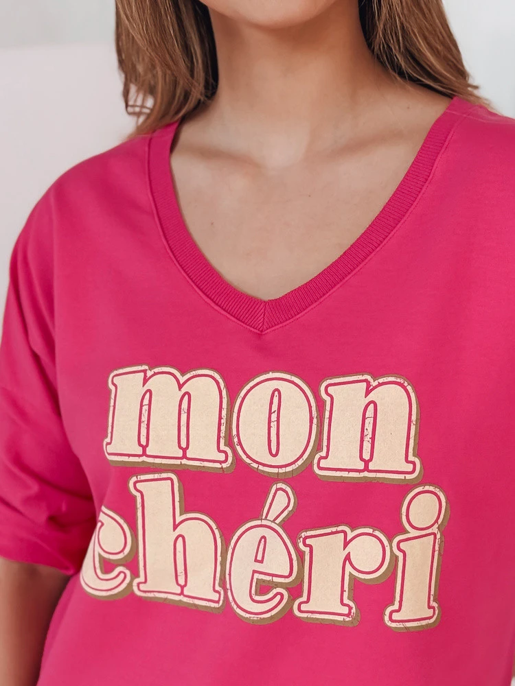 Halenka oversize s jedinečným potiskem "Mon Chéri" je ideální volbou pro ženy, které ocení pohodlí a módní vzhled. Univerzální velikost se hodí od XS do L. Výstřih do V jemně prodlužuje krk a volný střih se hodí k různým typům postavy. Díky univerzálnímu střihu lze halenku nosit různými způsoby - zastrčenou do kalhot nebo volněji rozhalenou pro ležérnější efekt. Je ideální pro každodenní styling k vytvoření módního vzhledu.