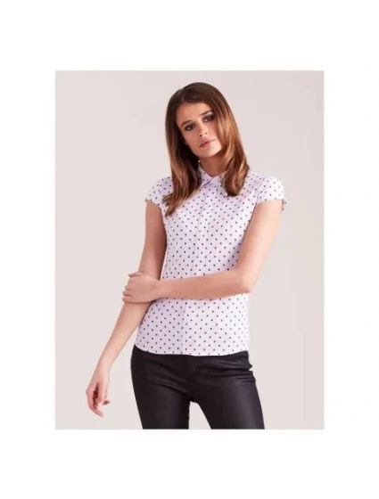 Bílá dámská halenka s červenými puntíky .