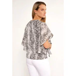 Dámská halenka s volánem na rukávech model 19424538 šedá se vzorem - Monnari