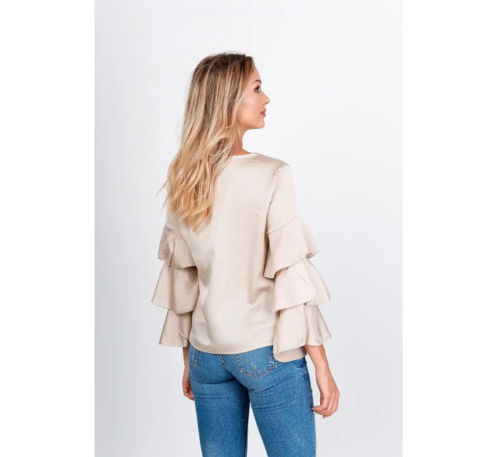 Přidání recenze k Dámská halenka s volánem na rukávech model 19424538 šedá se vzorem - Monnari