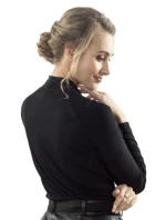 Elegantní černá halenka se stój a krajkovou vsadkou ve výstřihu.