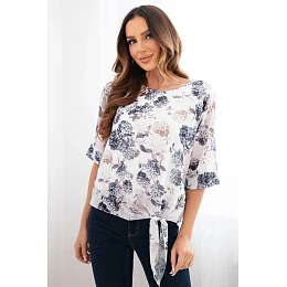 Halenka má rukáv dlouhý 3/4, který jí dodává lehkost a univerzální charakter. Dalším plusem je vázání dole, které umožňuje jemné přizpůsobení postavě a vytváří módní efekt. Podšívka zvyšuje komfort nošení a zabraňuje průsvitnosti materiálu.