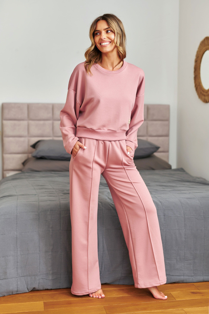 Dres damski DRS.7360 J/25 od marki Dr Nap to doskonałe połączenie swobodnego stylu, wygody i jakości. Luźny, oversize’owy fason sprawia, że komplet sprawdzi się zarówno jako wygodny homewear, jak i stylowa odzież codzienna. Góra to koszulka z długim rękawem o lekko obniżonej linii ramion, która doskonale układa się na sylwetce, zapewniając komfort i pełną swobodę ruchów. Długie spodnie z prostą nogawką posiadają praktyczne kieszenie, dzięki czemu są nie tylko wygodne, ale i funkcjonalne.