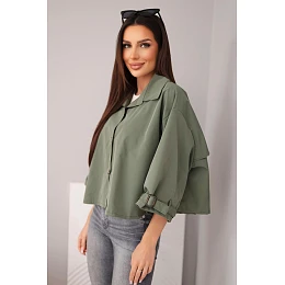 • Dámská jarní bavlněná bunda model 22084759 na knoflíky s límcem khaki - K-Fashion
