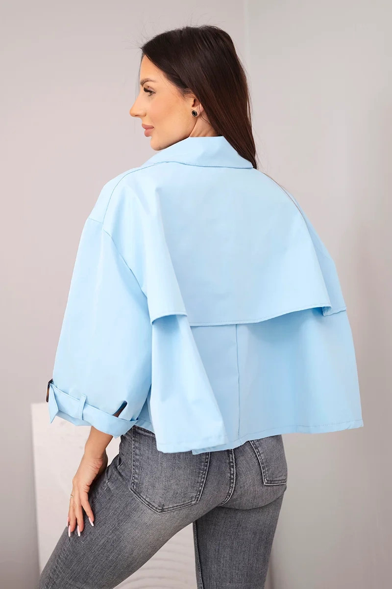3. Dámská jarní bavlněná bunda model 22084761 na knoflíky s límcem modrá - K-Fashion