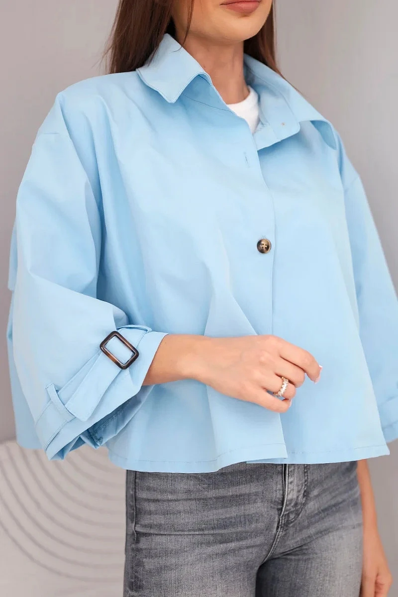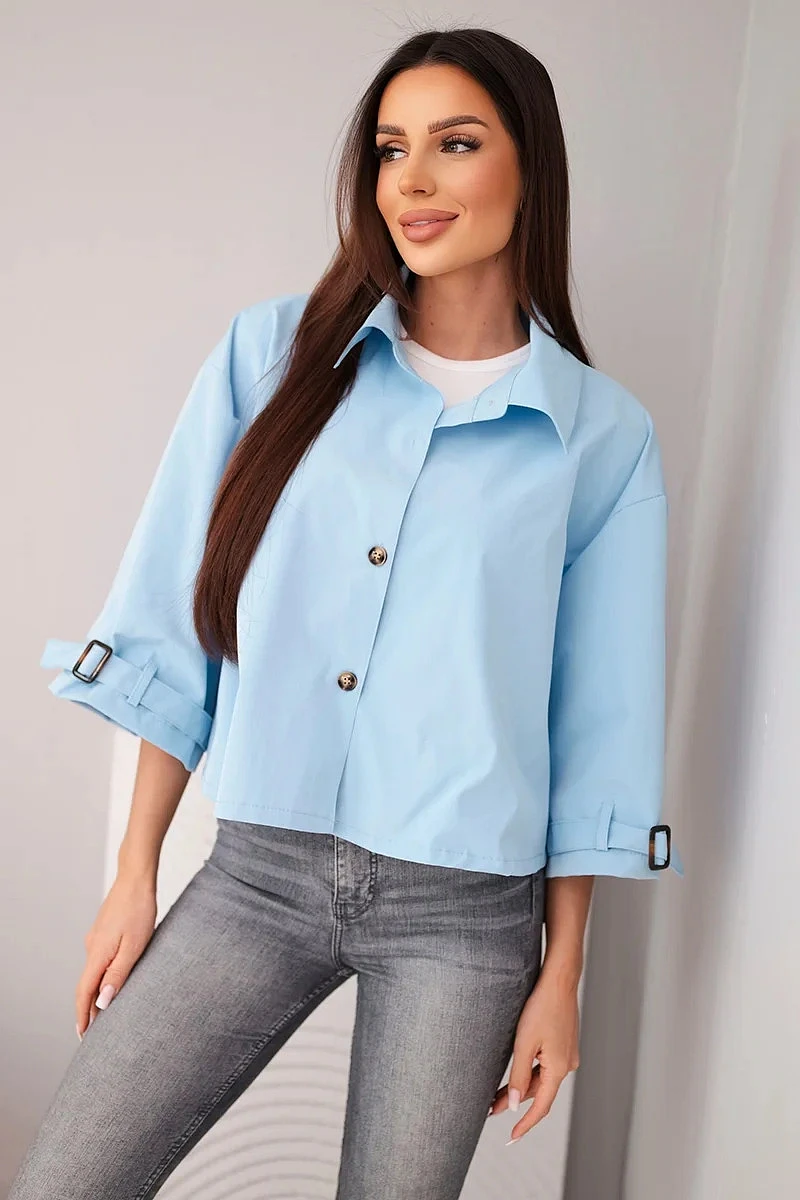 • Dámská jarní bavlněná bunda model 22084761 na knoflíky s límcem modrá - K-Fashion