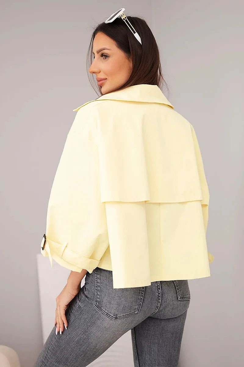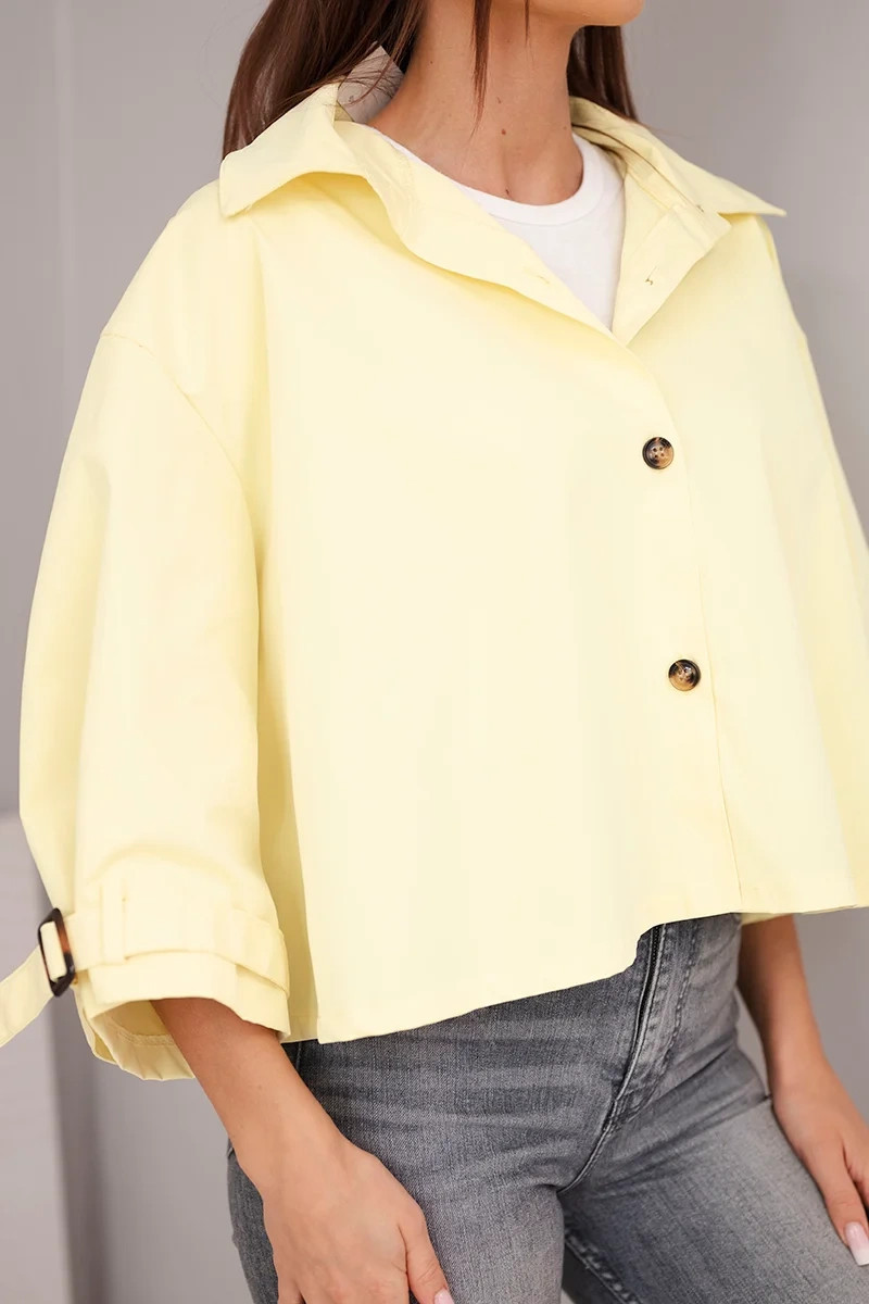 Dámská bunda krátkého střihu je stylovou a moderní nabídkou pro ženy, které oceňují módní vzhled a pohodlí v každodenních outfitech. Model se vyznačuje jednoduchým, lehce oversize střihem, který se hezky přizpůsobí postavě a poskytuje volnost pohybu. Klasický límec a zapínání na knoflíky dodávají celku elegantní charakter, díky čemuž bunda skvěle funguje jak v casual, tak i ve více propracovaných kombinacích.