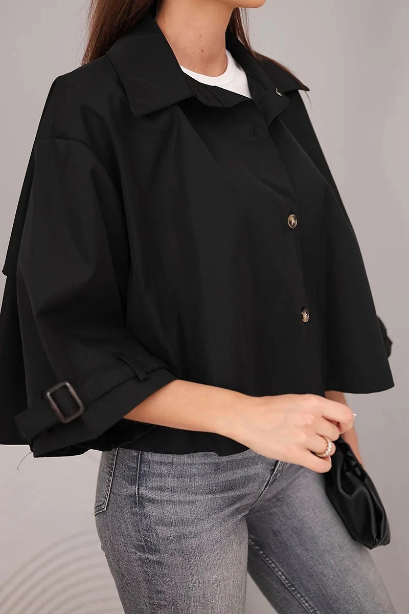 Dámská bunda krátkého střihu je stylovou a moderní nabídkou pro ženy, které oceňují módní vzhled a pohodlí v každodenních outfitech. Model se vyznačuje jednoduchým, lehce oversize střihem, který se hezky přizpůsobí postavě a poskytuje volnost pohybu. Klasický límec a zapínání na knoflíky dodávají celku elegantní charakter, díky čemuž bunda skvěle funguje jak v casual, tak i ve více propracovaných kombinacích.