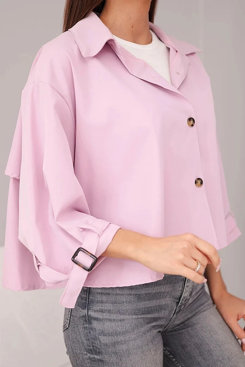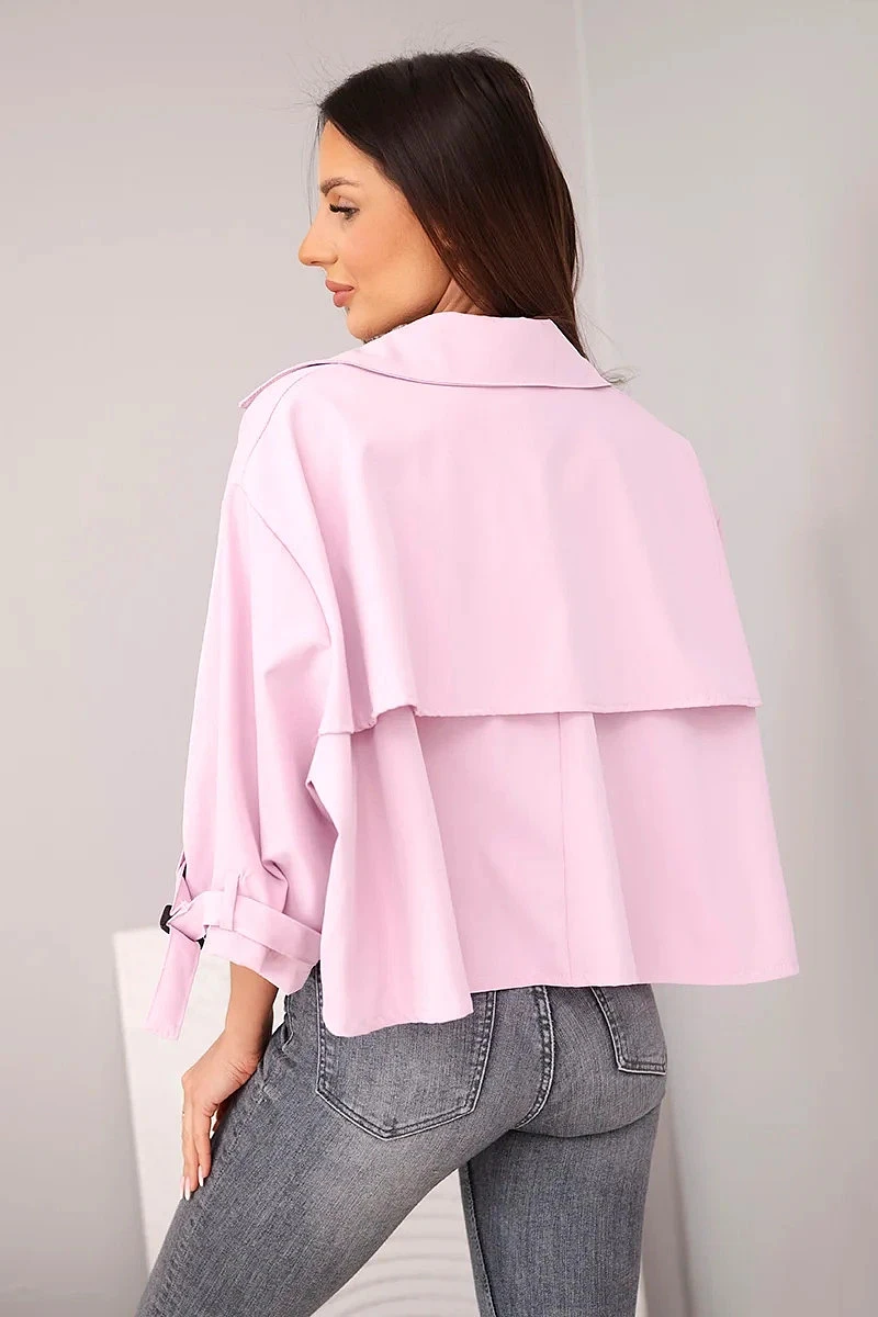 Dámská bunda krátkého střihu je stylovou a moderní nabídkou pro ženy, které oceňují módní vzhled a pohodlí v každodenních outfitech. Model se vyznačuje jednoduchým, lehce oversize střihem, který se hezky přizpůsobí postavě a poskytuje volnost pohybu. Klasický límec a zapínání na knoflíky dodávají celku elegantní charakter, díky čemuž bunda skvěle funguje jak v casual, tak i ve více propracovaných kombinacích.