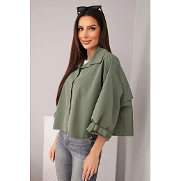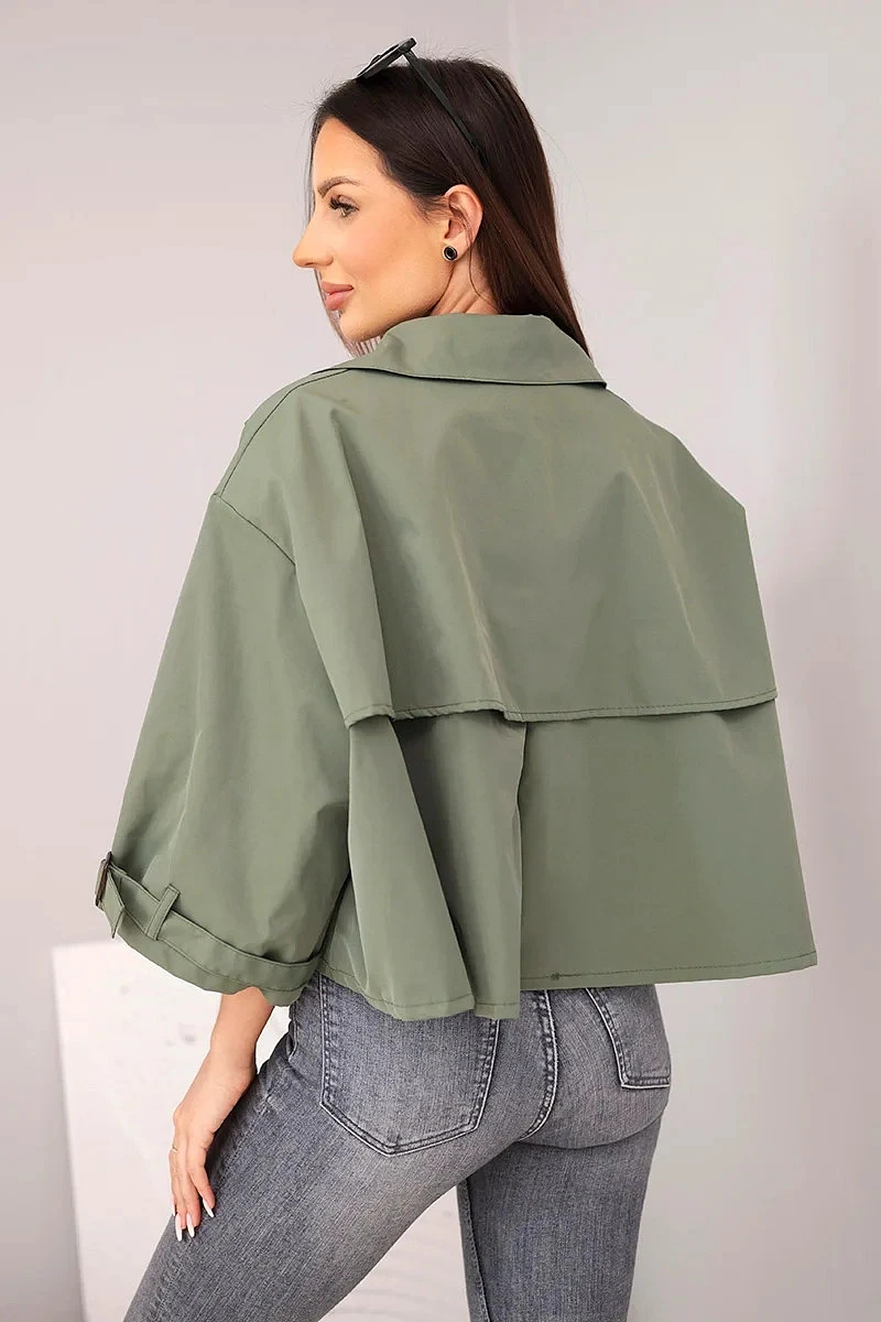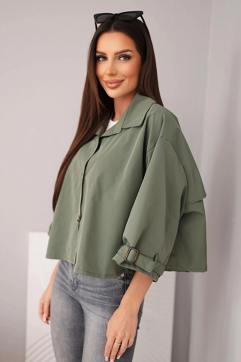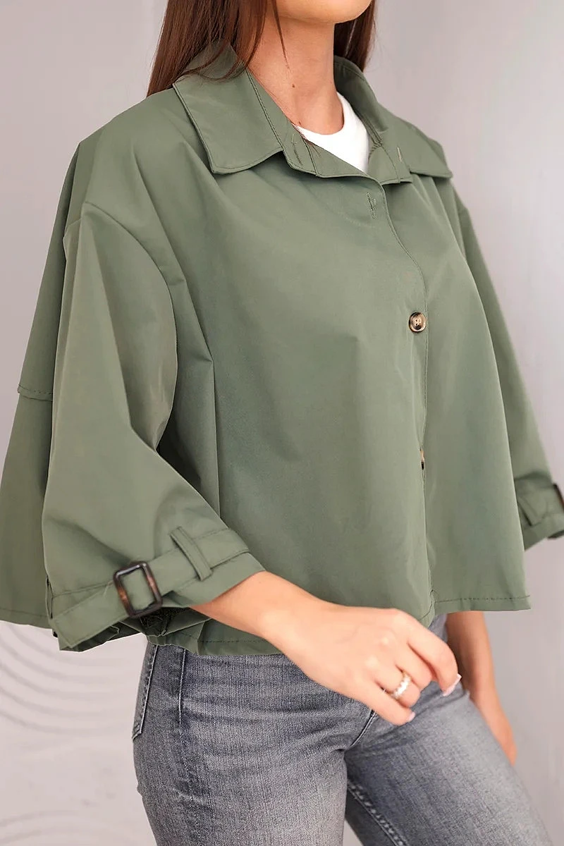Dámská bunda krátkého střihu je stylovou a moderní nabídkou pro ženy, které oceňují módní vzhled a pohodlí v každodenních outfitech. Model se vyznačuje jednoduchým, lehce oversize střihem, který se hezky přizpůsobí postavě a poskytuje volnost pohybu. Klasický límec a zapínání na knoflíky dodávají celku elegantní charakter, díky čemuž bunda skvěle funguje jak v casual, tak i ve více propracovaných kombinacích.