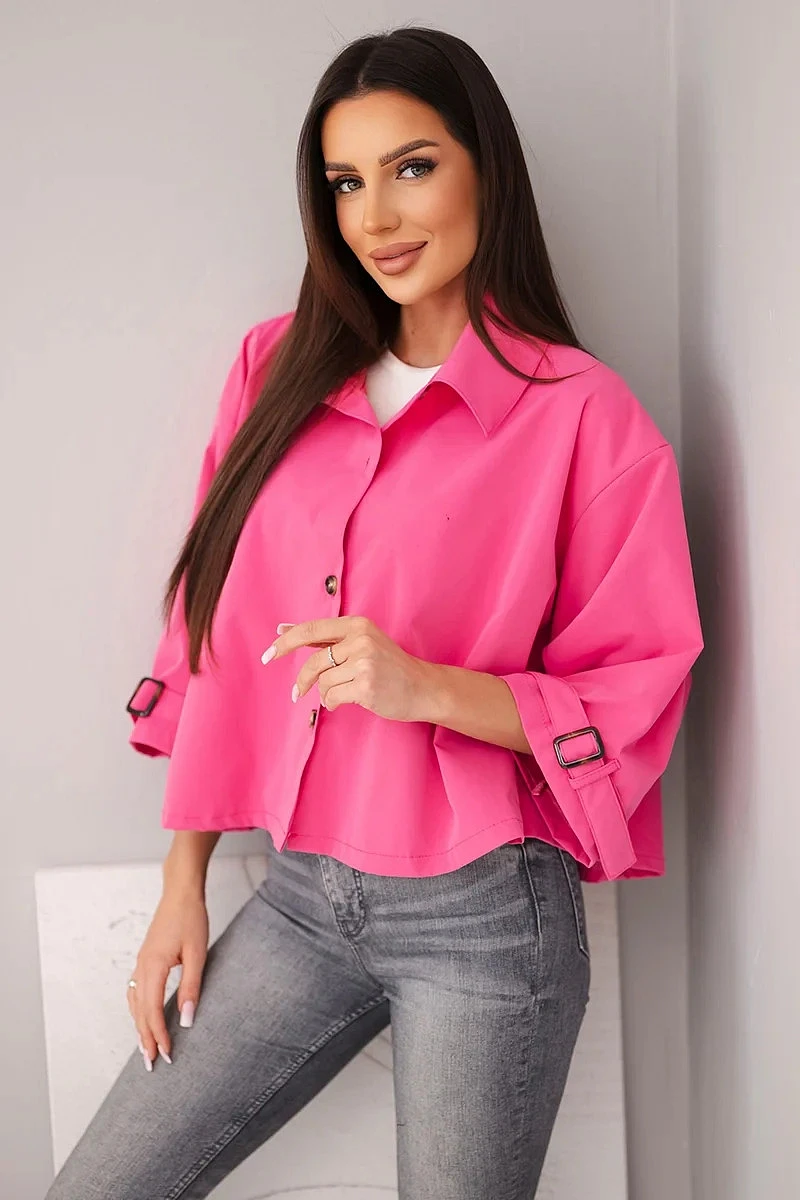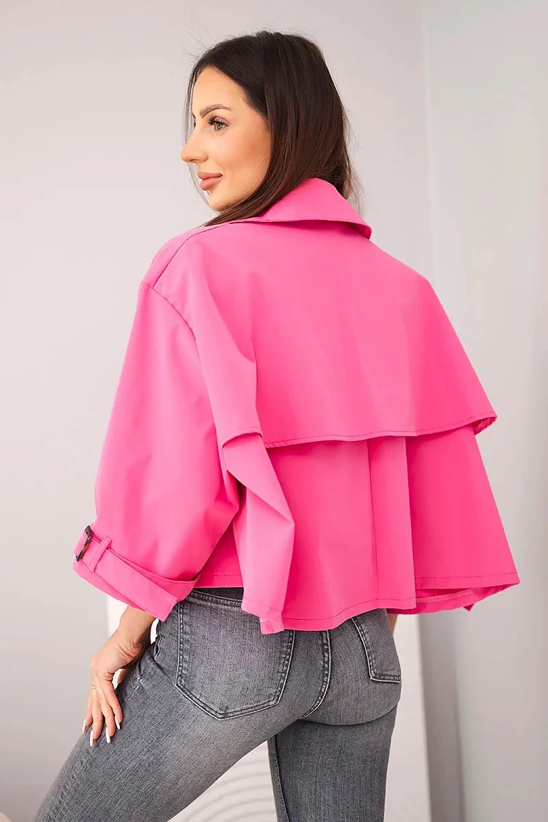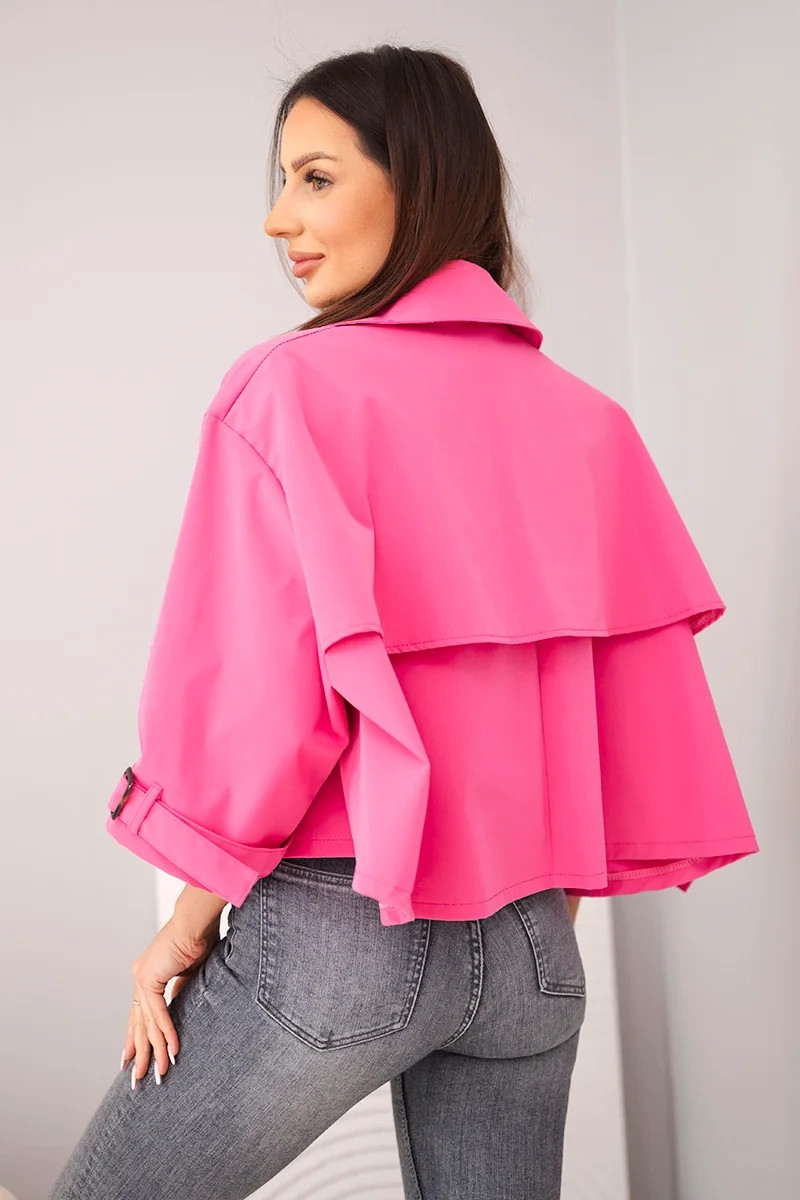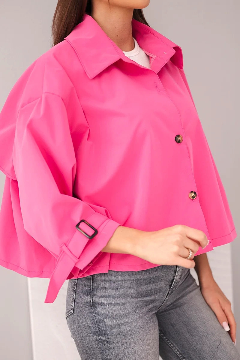 3. Dámská jarní bavlněná bunda zapínaná na knoflíky s límcem růžová