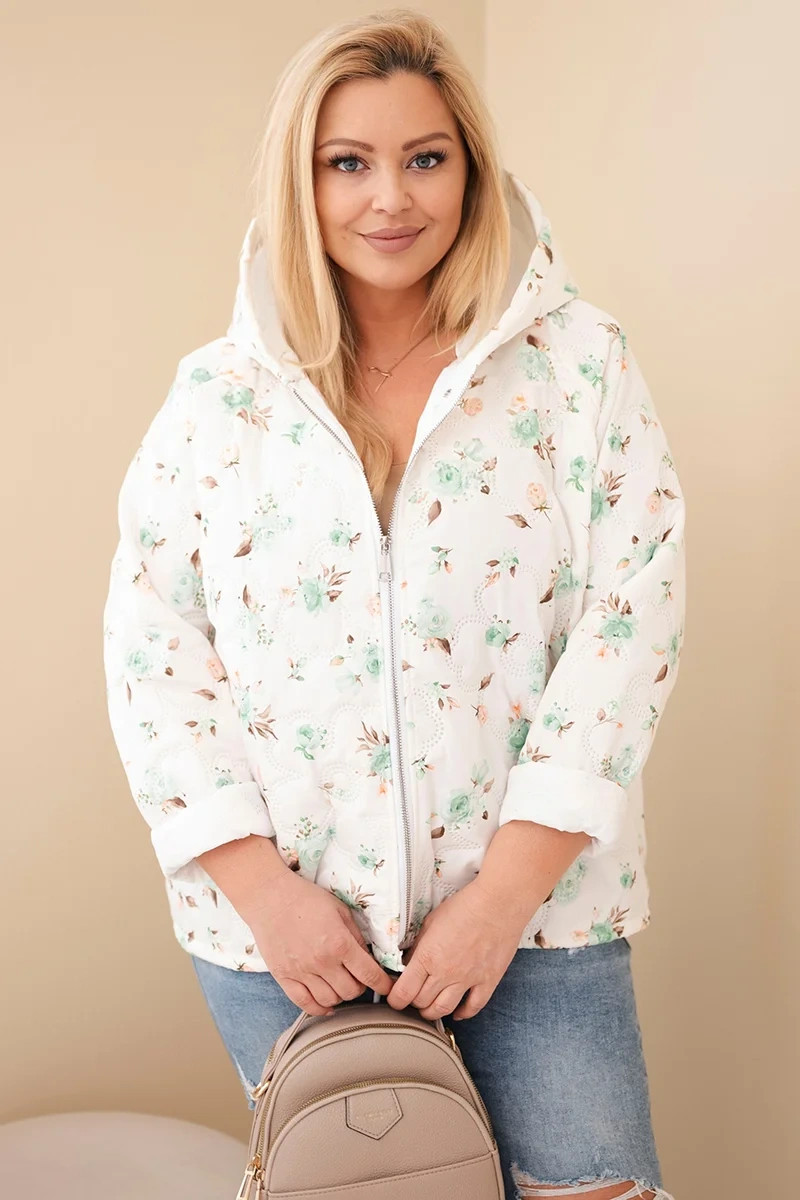 • Dámská jarní bunda Plus Size s drobným květinovým vzorem mentolová