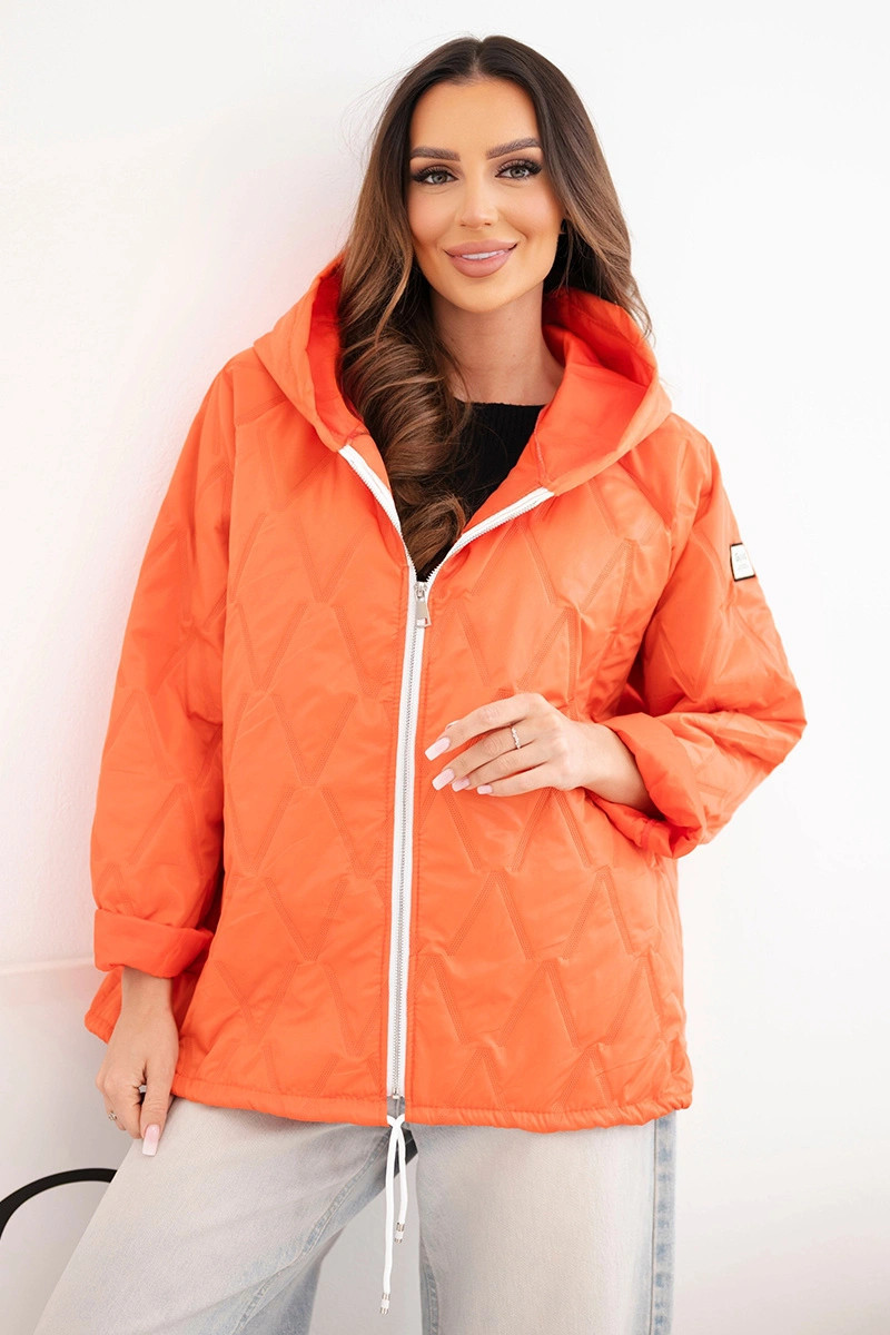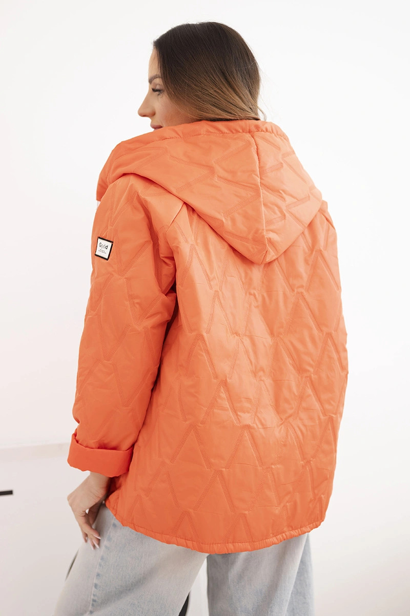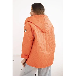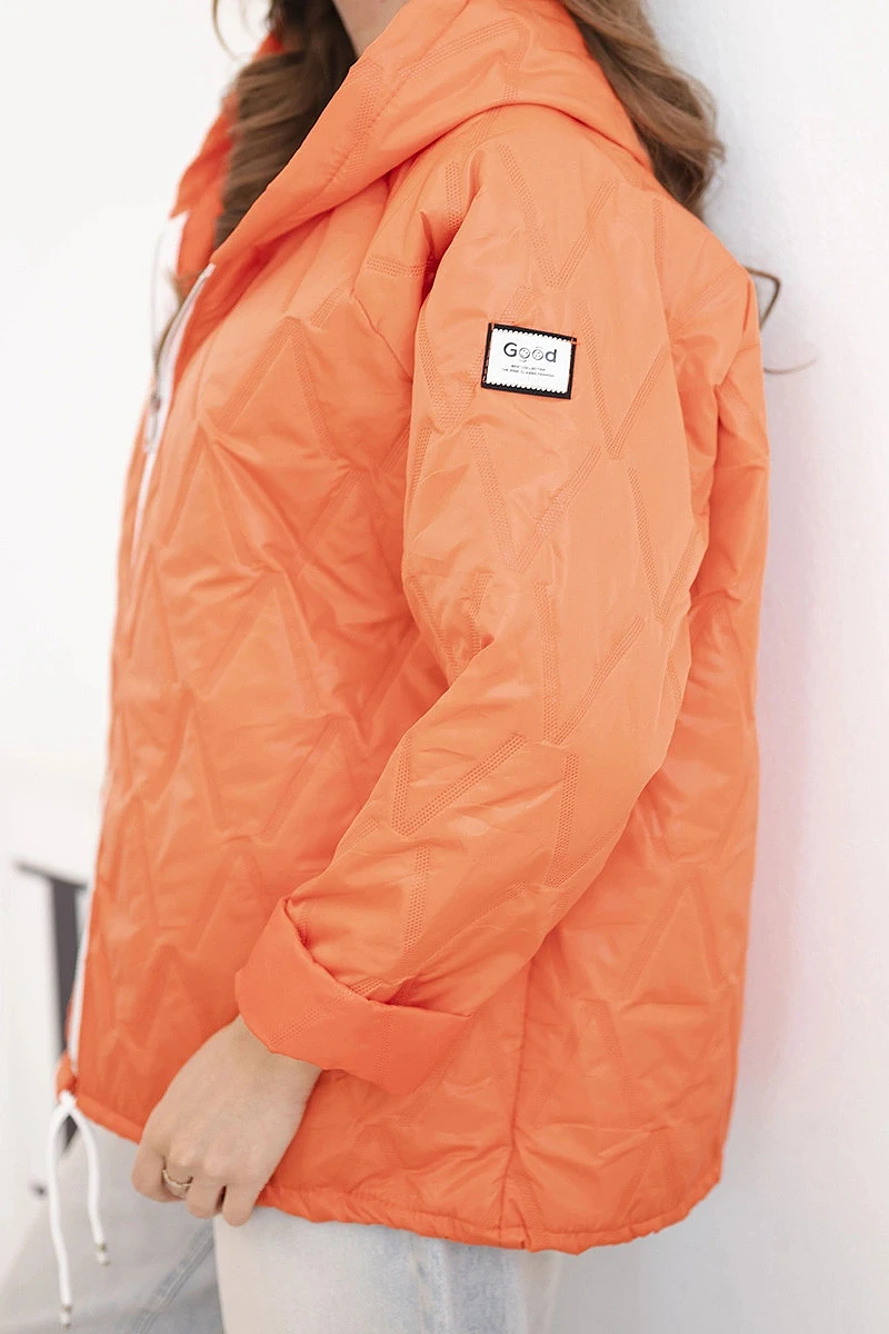 • Dámská jarní prošívaná bunda s kapucí a na zip tmavě oranžová