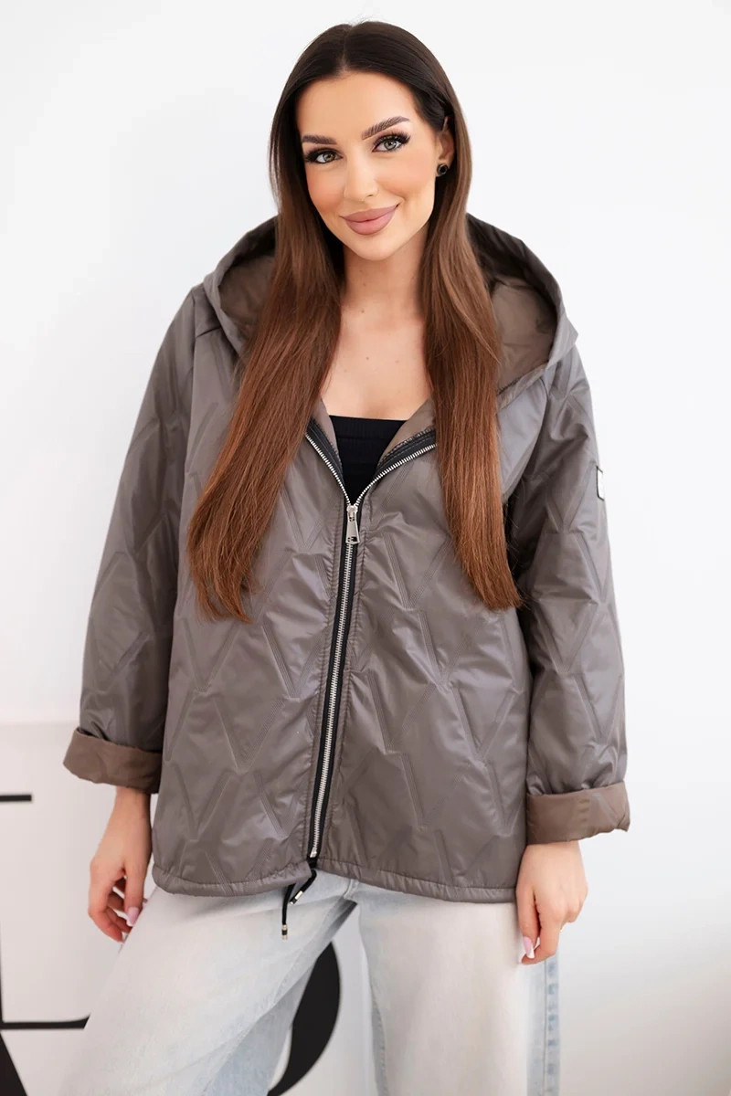 Dámská jarní prošívaná bunda s kapucí a zipem fango
