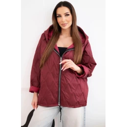3. Dámská jarní prošívaná bunda s kapucí a zipem švestková