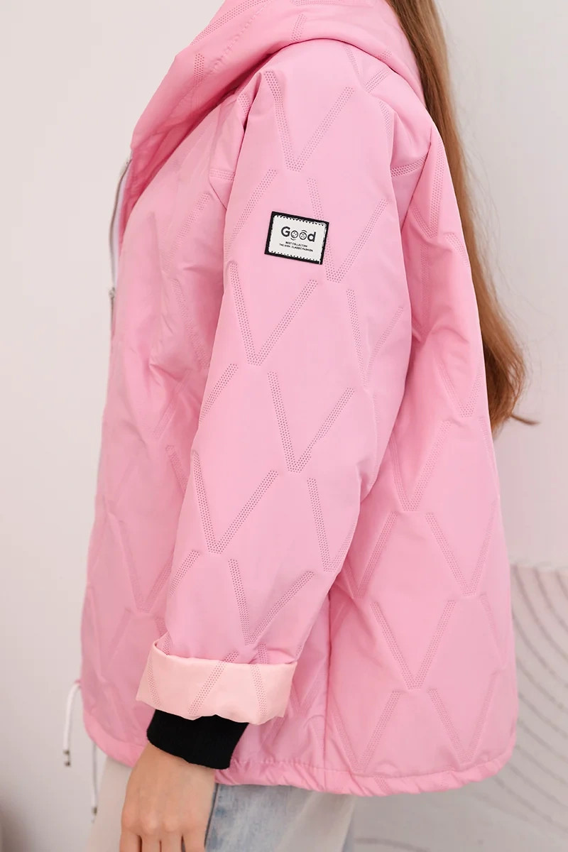 • Dámská jarní prošívaná bunda s kapucí a zipem světle růžová