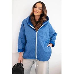 • Dámská jarní prošívaná bunda s kapucí a zipem tmavě džínová