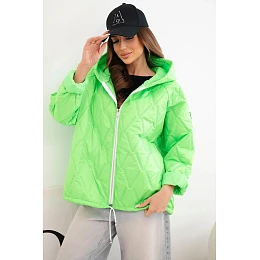 • Dámská jarní prošívaná bunda s kapucí a zipem zelený neon