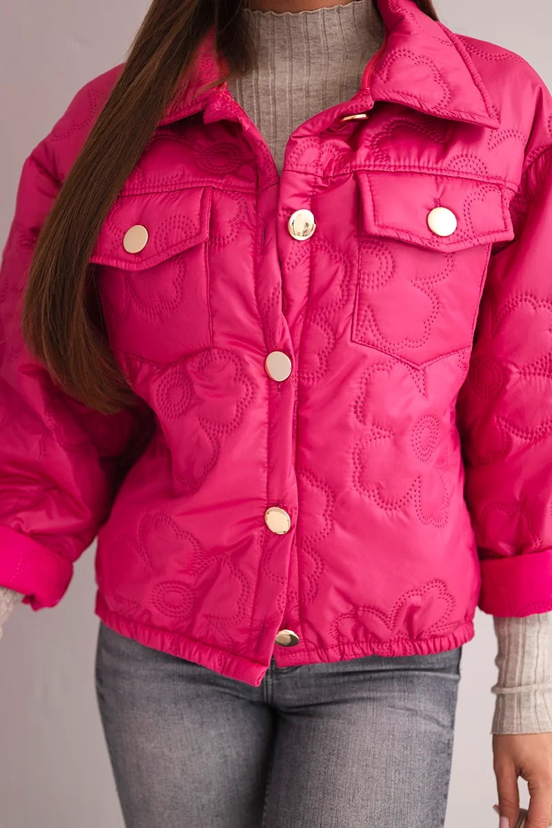 Módní a funkční dámská prošívaná bunda s květinovým vzorem je vynikající volbou na chladnější dny. Vyniká originálním prošíváním květin, které jí dodává jedinečný charakter a ženské kouzlo. Byla vyrobena z lehkého, ale teplého materiálu, díky čemuž zajišťuje tepelný komfort a volnost pohybu.