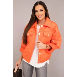 Dámská jarní prošívaná bunda s květinovým vzorem oranžová