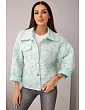 Zapíná se na stylové patentky, má límec a elastické zakončení ve spodní části, což zajišťuje dobré přizpůsobení postavě. Praktické kapsy a ozdobné švy jí dodávají ležérní, městský styl. Ideální pro každodenní nošení – k džínům, legínám nebo kalhotám z materiálu.