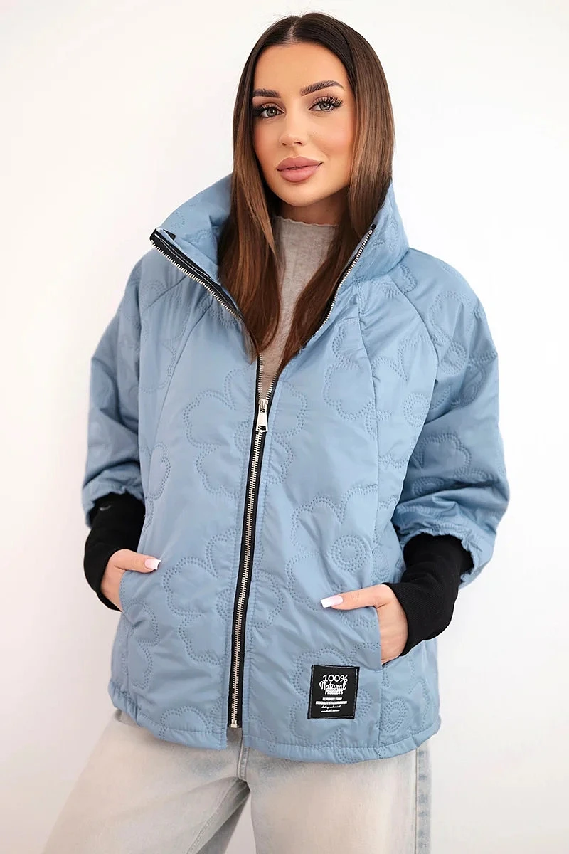 stylová dámská bunda s módním, prošívaným provedením je vynikající volbou pro ženy, které si cení pohodlí a moderního vzhledu. Charakteristické dekorativní prolisy ve tvaru květin dodávají bundě výjimečný charakter a způsobují, že vyniká oproti klasickým modelům. Kratší střih zajišťuje, že bunda hezky sedí na postavě a výborně se hodí pro každodenní outfity.