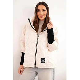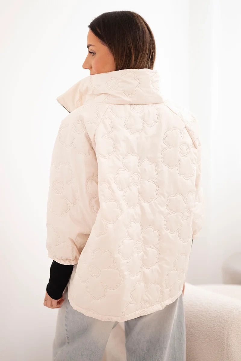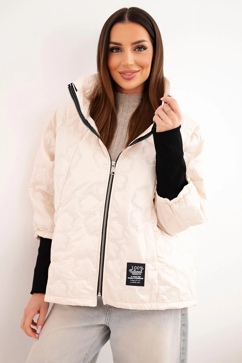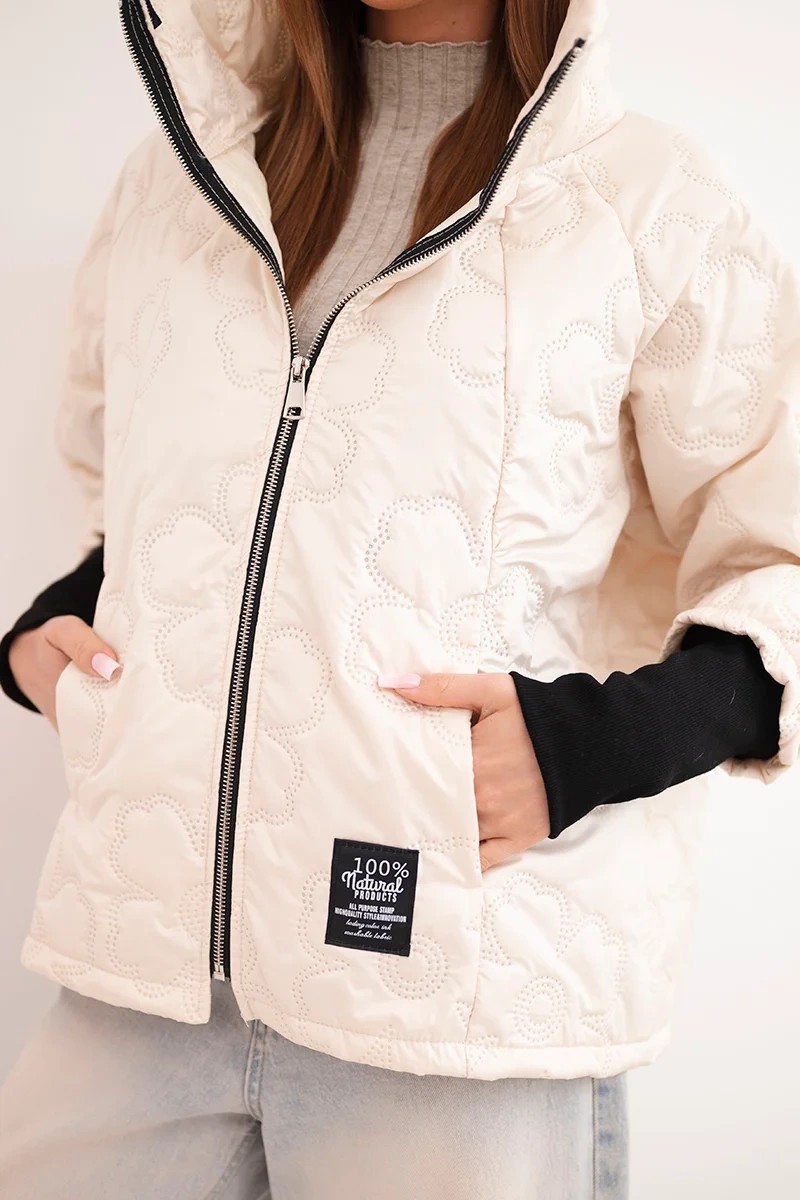 • Dámská jarní prošívaná bunda s ozdobnou ražbou a zipem světle béžová