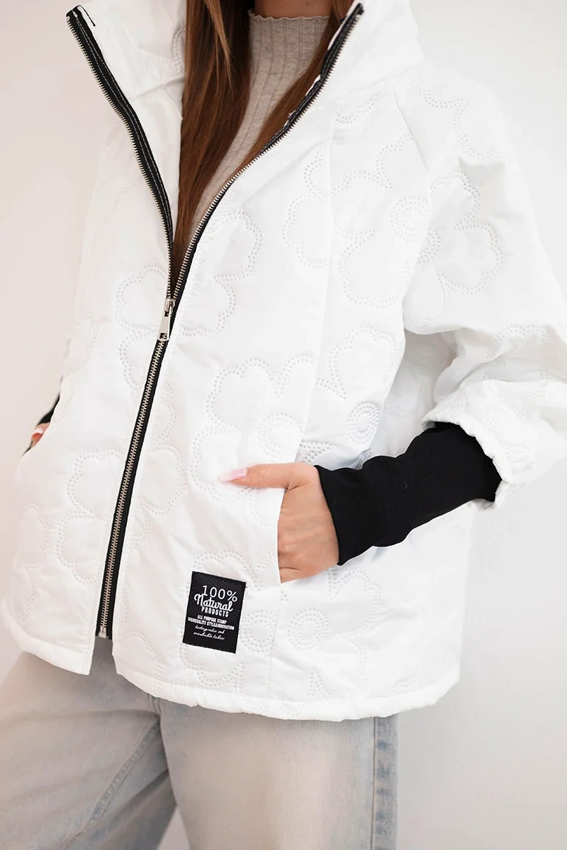 • Dámská jarní prošívaná bunda s ozdobným model 22040174 a zipem bílá - K-Fashion