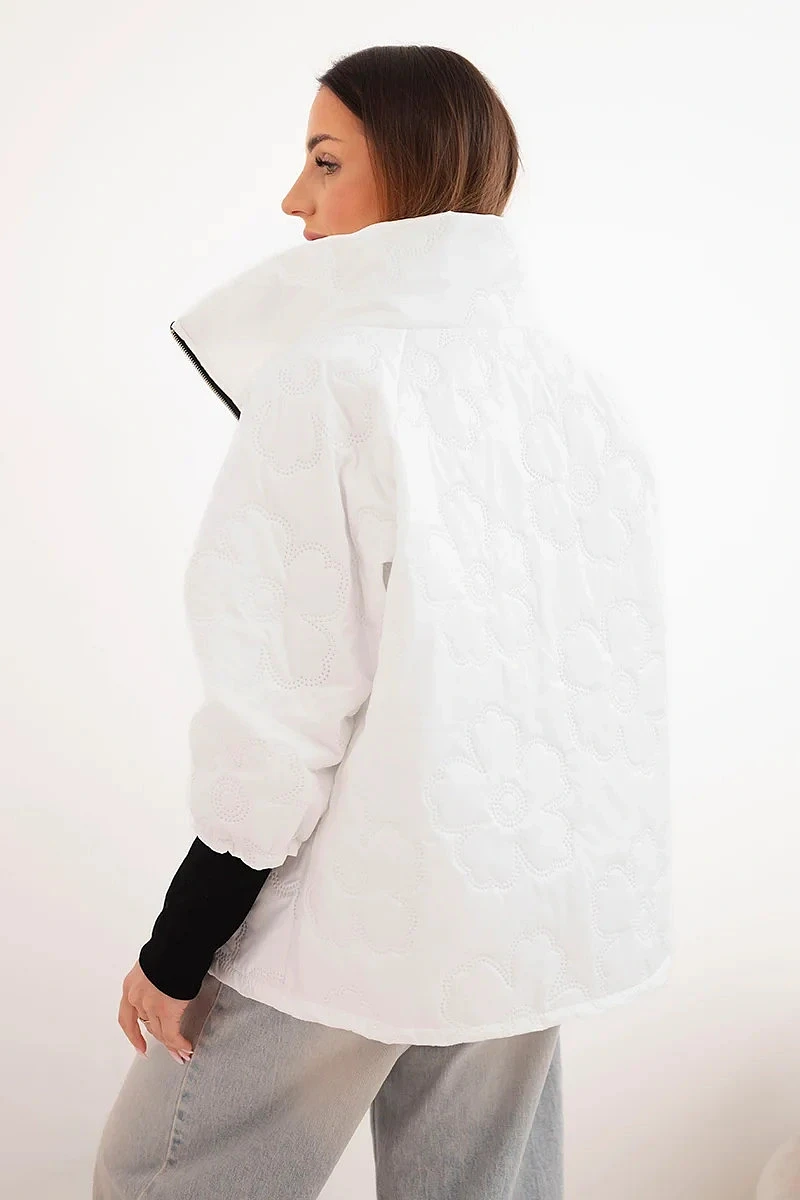 stylová dámská bunda s módním, prošívaným provedením je vynikající volbou pro ženy, které si cení pohodlí a moderního vzhledu. Charakteristické dekorativní prolisy ve tvaru květin dodávají bundě výjimečný charakter a způsobují, že vyniká oproti klasickým modelům. Kratší střih zajišťuje, že bunda hezky sedí na postavě a výborně se hodí pro každodenní outfity.