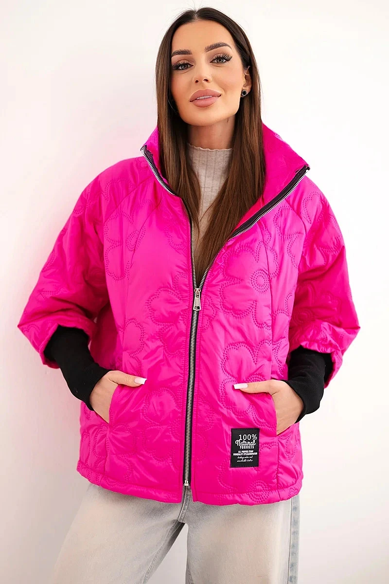 • Dámská jarní prošívaná bunda s ozdobným vzorem a zipem růžový neon