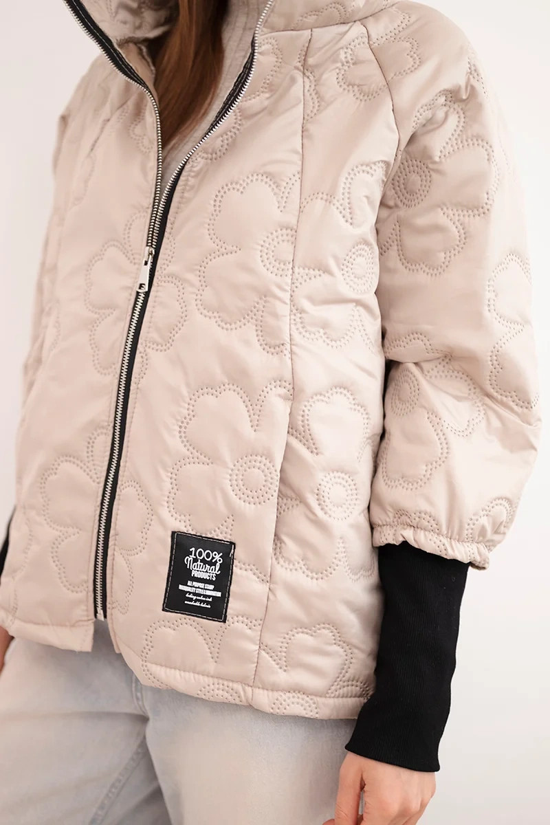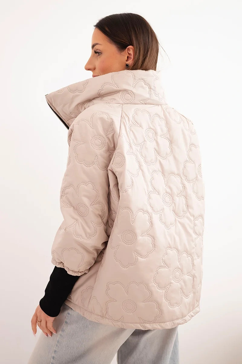 stylová dámská bunda s módním, prošívaným provedením je vynikající volbou pro ženy, které si cení pohodlí a moderního vzhledu. Charakteristické dekorativní prolisy ve tvaru květin dodávají bundě výjimečný charakter a způsobují, že vyniká oproti klasickým modelům. Kratší střih zajišťuje, že bunda hezky sedí na postavě a výborně se hodí pro každodenní outfity.