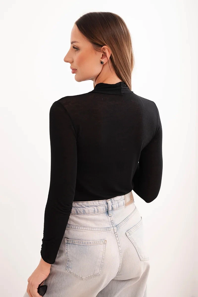 Dámská kasmírská blůza s jemným rolákem a dlouhým rukávem černá