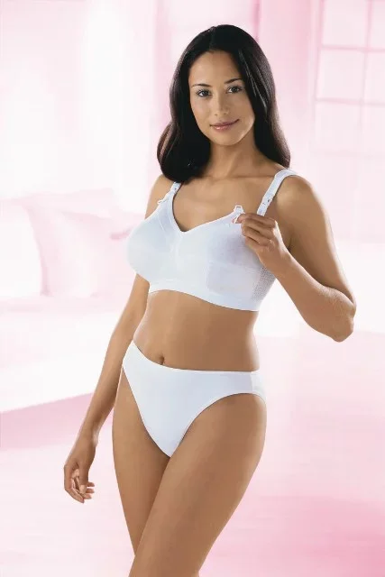 Podprsenka na kojení s vysokým podílem bavlny a perfektním střihem až do košíčku I. Široká měkkce vypodložená ramínka odlehčují záda i oblast ramen, jsou pevně spojená s prsní podpěrou.