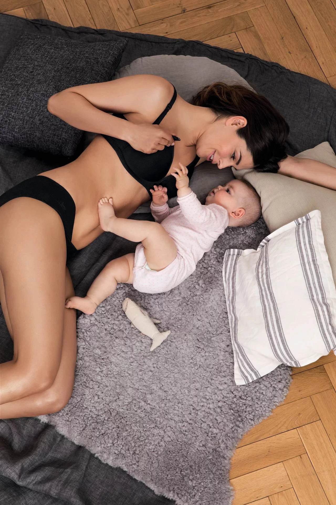 Podprsenka určena pro kojící maminky. Muldovaná, bez kostic. Přední odepínání na kojení. Ramínka jsou posouvací.