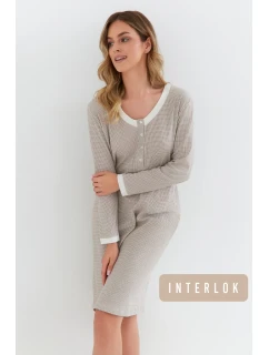 dekolt trójkątny z polo zapinane na 4 kwadratowe, perłowe guziki