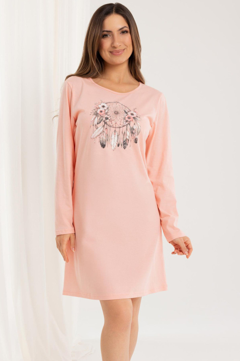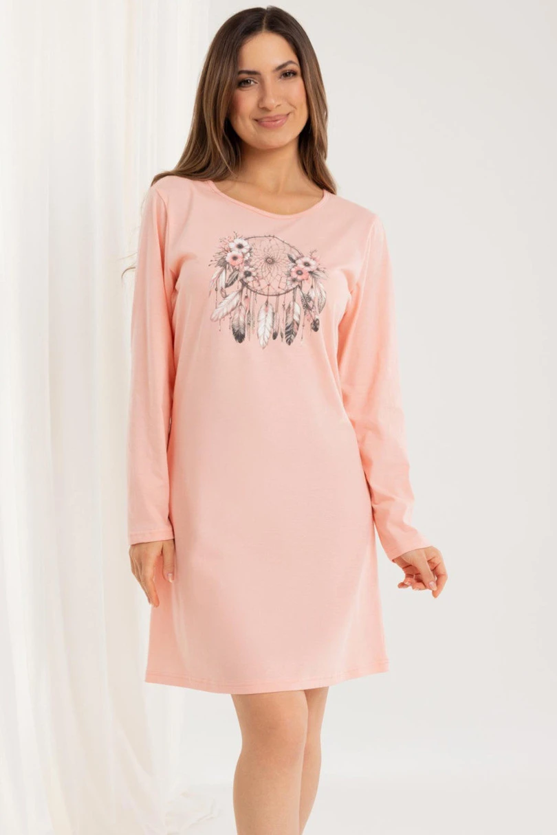 Koszula nocna 162 BIG J/25 to klasyczna propozycja dla kobiet, które cenią komfort snu i naturalne materiały. Wykonana z wysokiej jakości, 100% bawełny, jest miękka, oddychająca i przyjemna dla skóry. Model posiada długi rękaw, półokrągły dekolt oraz długość przed kolano, dzięki czemu sprawdza się o każdej porze roku. Kolorowy nadruk z przodu dodaje koszuli dziewczęcego i radosnego charakteru. Idealna do spania i wieczornego relaksu.