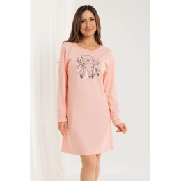 Koszula nocna 162 J/25 to klasyczna propozycja dla kobiet, które cenią komfort snu i naturalne materiały. Wykonana z wysokiej jakości, 100% bawełny, jest miękka, oddychająca i przyjemna dla skóry. Model posiada długi rękaw, półokrągły dekolt oraz długość przed kolano, dzięki czemu sprawdza się o każdej porze roku. Kolorowy nadruk z przodu dodaje koszuli dziewczęcego i radosnego charakteru. Idealna do spania i wieczornego relaksu.